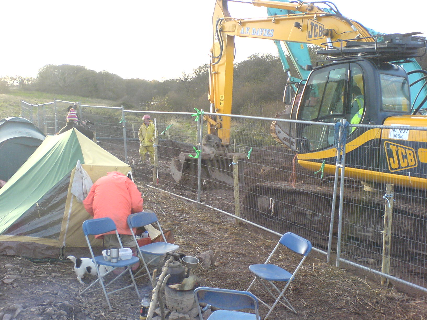 then they moved in with the diggers and pretended they were going to dig underneath the path - but as we threatened to squat the tunnel they gave up and admitted they had no intention of risking life. to date they have interogated the farmer whose land the path is on and attempted to close off the path but we have resisted and will continue to do so until they release a full report of the safety concerns raised by SAFE HAVEN group.