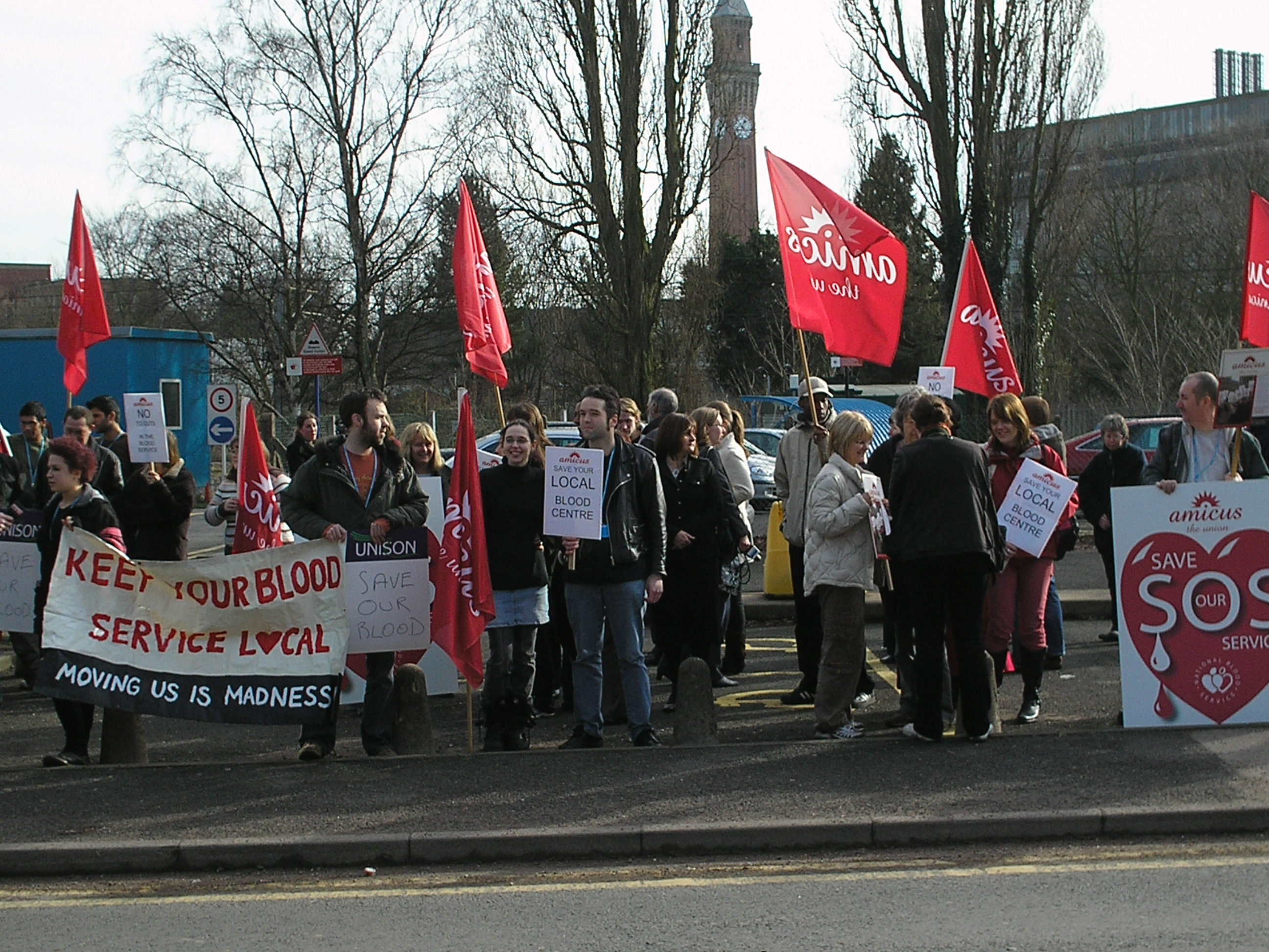 Staff at National Blood Service centres around the country will be protesting between 12 noon + 2pm.