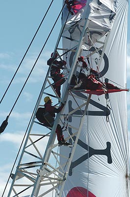 One of the volunteers on the crane, Cat Dorey, said:'Trident is a cold war relic designed to destroy Russian cities. If MPs buckle under pressure from Tony Blair and vote to renew it, the repercussions will be felt around the world. We can't oppose proliferation of WMD if we're building them at home.'