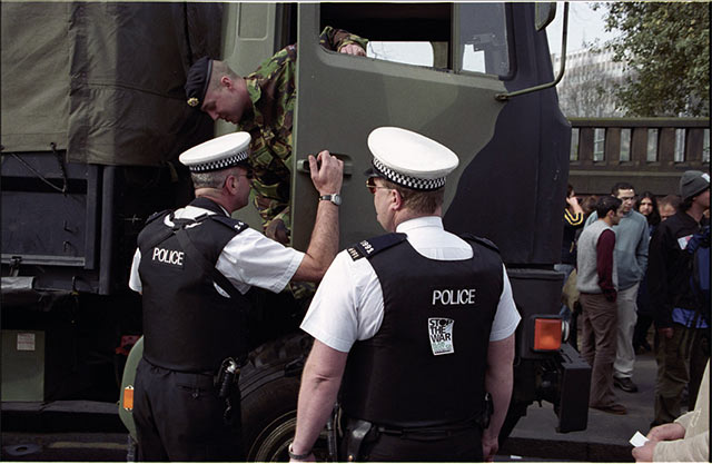 Staff and students then made their way to the Bristol Road where they proceeded to blockade the road just as a convoy of army vehicles had stopped at the traffic lights. After holding the military convoy up for some time and redecorating their vehicles and the police with anti-war stickers, they then attempted to occupy the Vice Chancellor's office but University Security had pre-empted this and locked all the doors. Students and staff did however manage to secure a meeting with the University's finance director and negotiated a promise to divest the University's substantial investments in BAe Systems and other arms dealers.