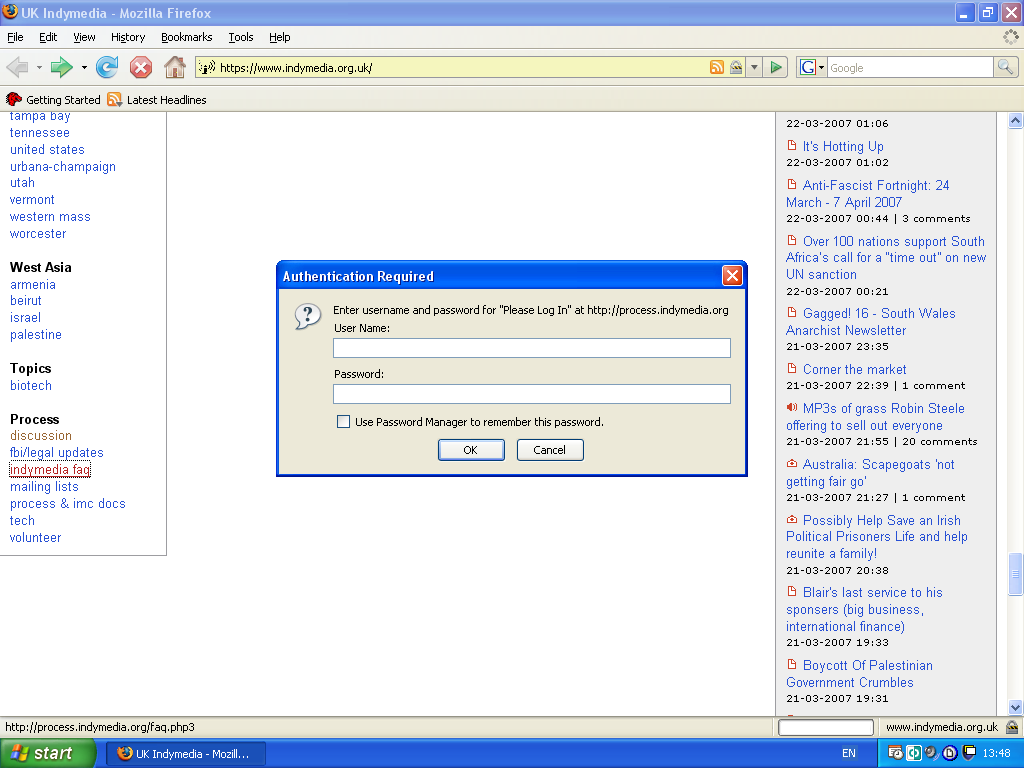 a password is needed for the Indymedia faq?