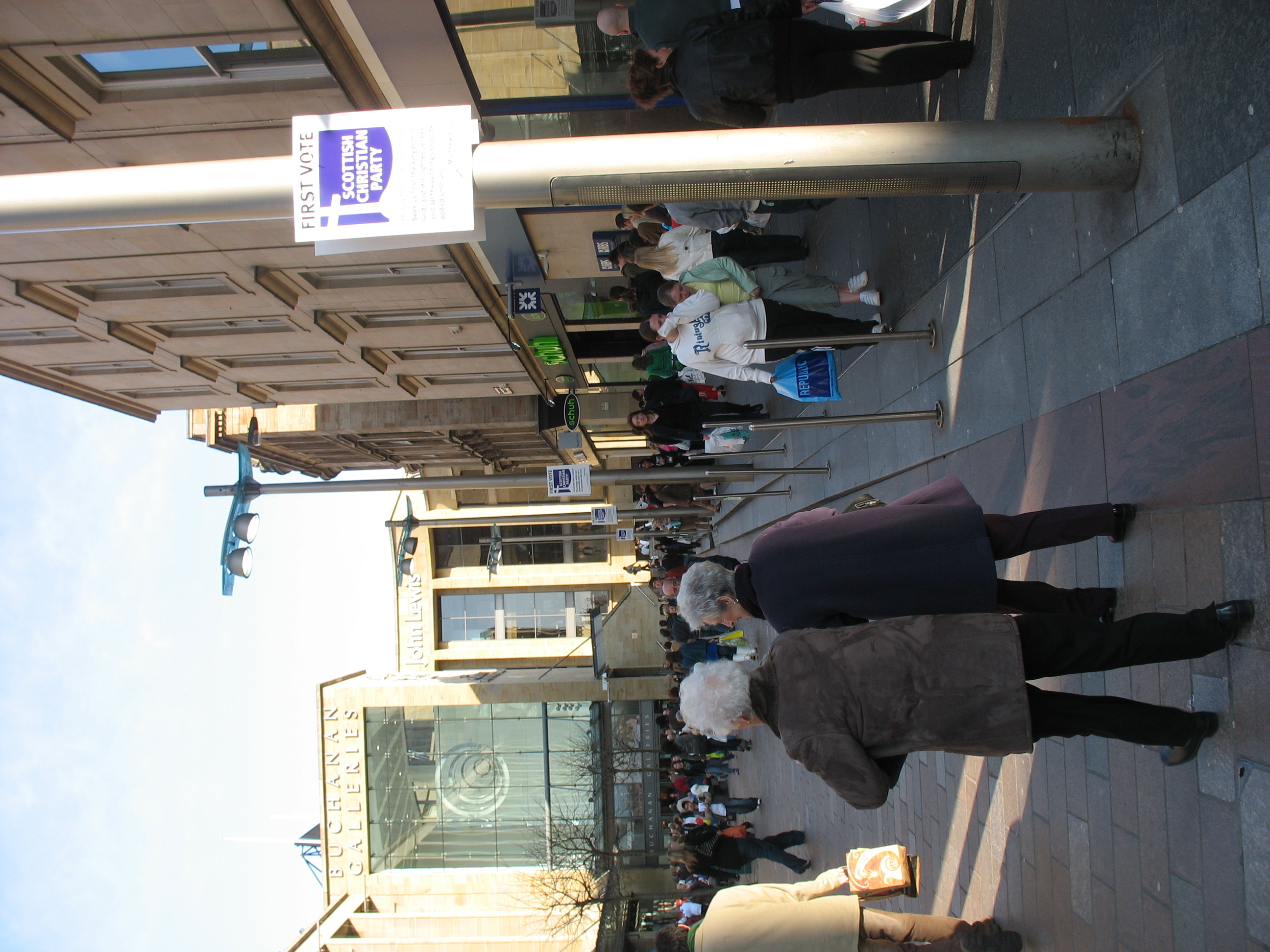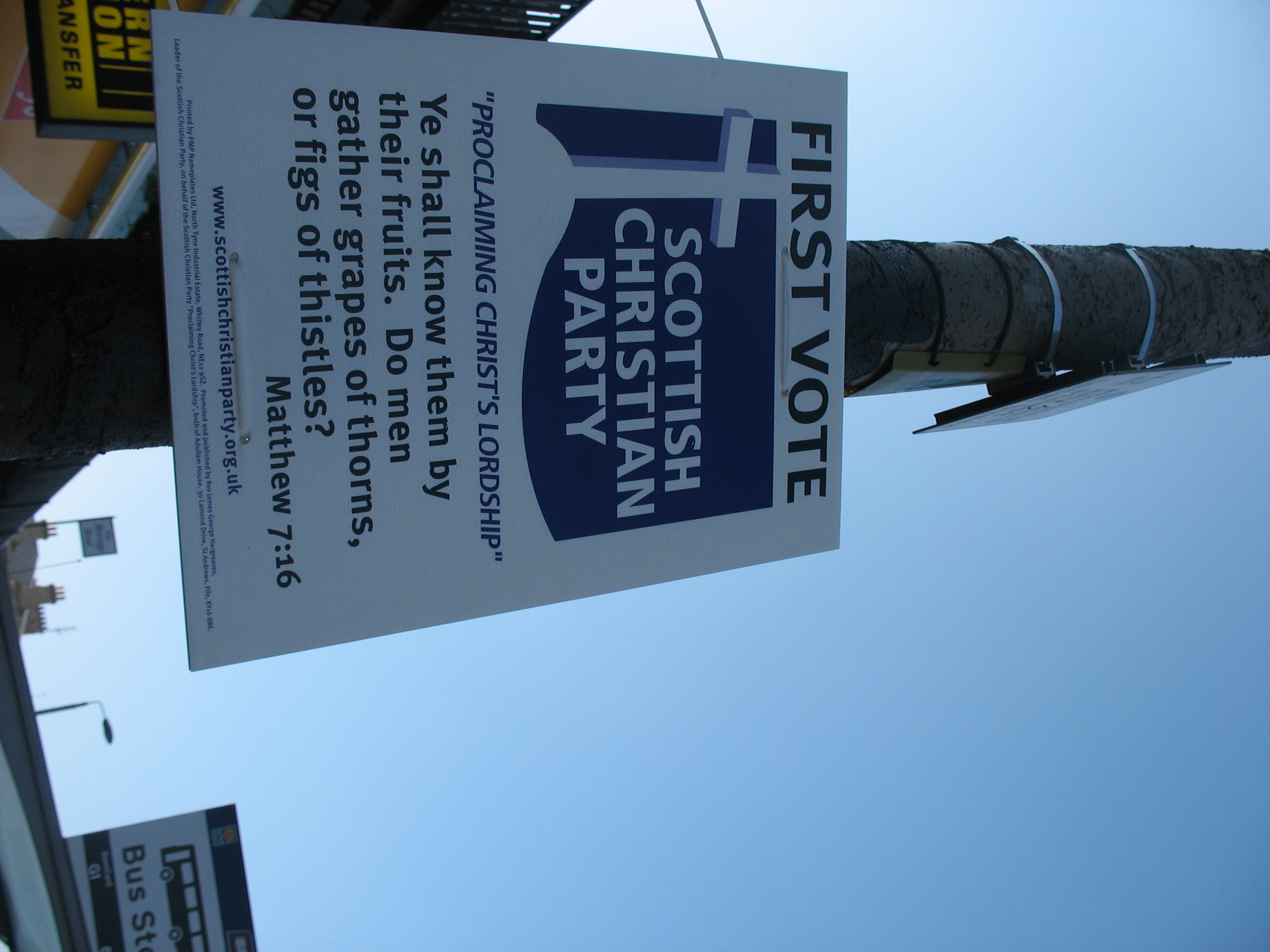 http://thechristianparty.org/cmsparty/index.php?option=com_content&task=blogcategory&id=69&Itemid=47 ), a notoriously Homophobic Right Wing Christian Group has been plastering plackards throughout Glasgow. These are printed on the sort of card that Estate Agents use and, given that there is such a profusion of them, this isn't the work of a small grass roots political party as they claim to be. Following are some statments abstracted from their Web Site and photos of the plackards: