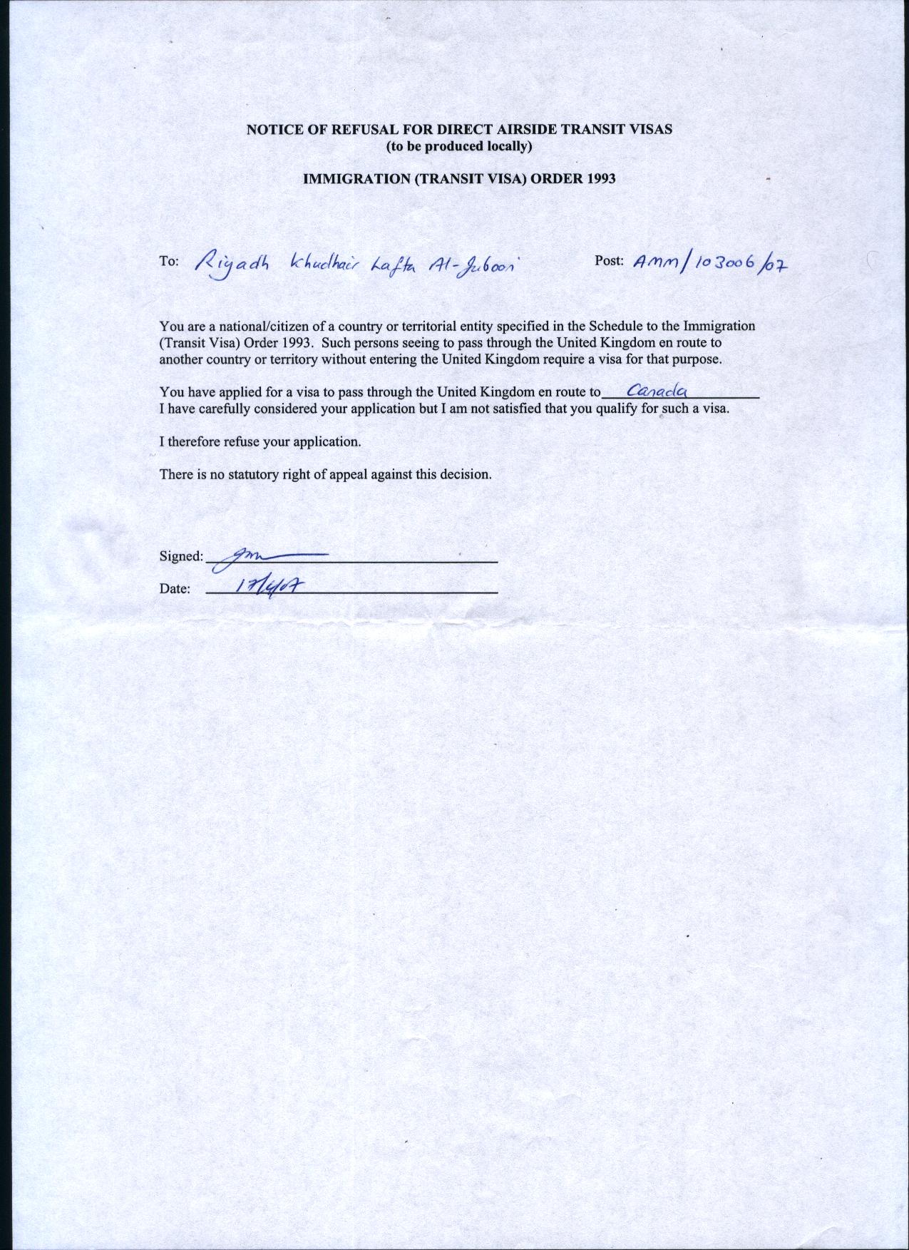 After all, with Iraq being in the process of moving towards "democracy" and the Iraqi people being "free" from "repression" and "dictatorship", why are the UK authorities so hesitant about letting this person in?