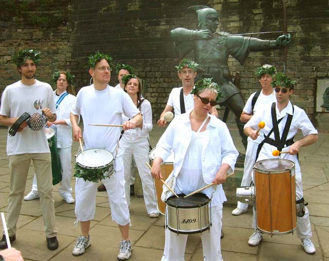 The Mayday 2007 demonstration in Nottingham set off from the Brewhouse Yard near the Castle, at 12.30 pm [well, nearer 1.30 really]. With a samba band upfront, we went to the Market Square. The march returned to Brewhouse Yard, where there were stalls & speakers. The event especially suported asylum seekers in their demand for the right to work.