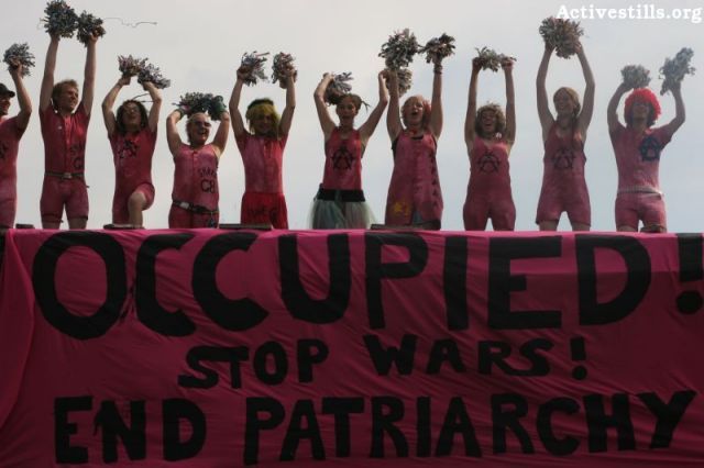 http://www.g8andwar.de). Following the rallies the military area began to be occupied as people began erecting tents to create a temporary settlement. A military tower was painted pink in a repeat of a previous action that saw the military destroying a similar tower when they couldn´t get rid of all the pink paint!