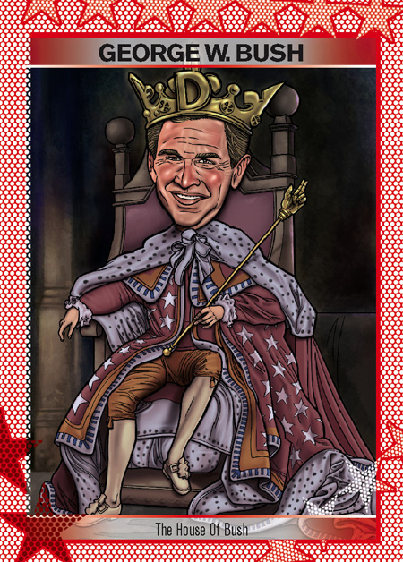 George Bush is portrayed as a loony King George II of Americaland, Dick Cheney as Elmer Fudd, Karl Rove as Spy Vs Spy and God as a critic of rising oil prices,