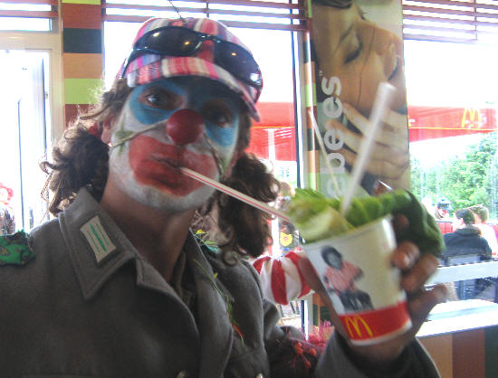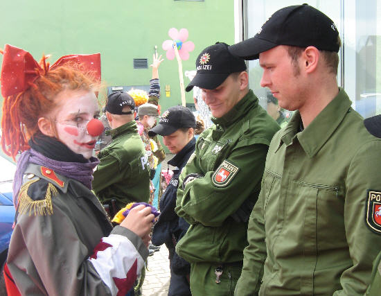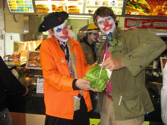 McDonalds is extensively criticised over intellectual property rights, environmental destruction, animal rights and health issues, particularly childhood obesity. At the protest in Bad Doberan activists mimed eating plates of rotten food and rubbish to highlight these criticisms. Unfortunately, McDonalds called the police and around a dozen activists who did not have German passports were surrounded and held in the car-park by scores of riot police for more than six hours.