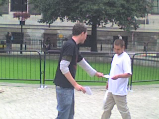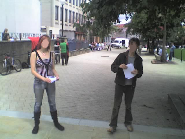 In solidarity with fellow workers suffering exploitation at the hands of Starbuck’s, Sheffield IWW staged a picket of a city centre shop. The public were asked not to drink at Starbuck’s with wobblies offering free tea, coffee and fruit juices as an alternative. The picket was also accompanied by a sound-system playing a fine collection of classic two-tone and ska. The manager approached members within the hour. After claiming that Starbuck’s did “good” work around the world, the conversation turned to the chains union-busting record. He acknowledged that such policies existed while choosing not to condemn it. Throughout our conversation he proved clearly more concerned with preserving business than the appalling labour policies or purchasing record of the company he represents. The police promptly arrived, who once again confirmed their roles as Britain’s foremost defenders of capital by only allowing the picket to continue as long as no free products were offered. Such actions were deemed to be too “antagonistic” for our poor, picked on coffee firm. Clearly Starbucks, not entirely satisfied with its almost total domination of the world coffee market, felt intimidated by a cheaper more ethically responsible competitor. Despite these difficulties, the picket resumed (this time with freebies dished out on the sly). We handed out all our leaflets and did some hardcore skanking in the sunshine – a far brighter prospect for potential consumers than the overpriced products of Starbucks.