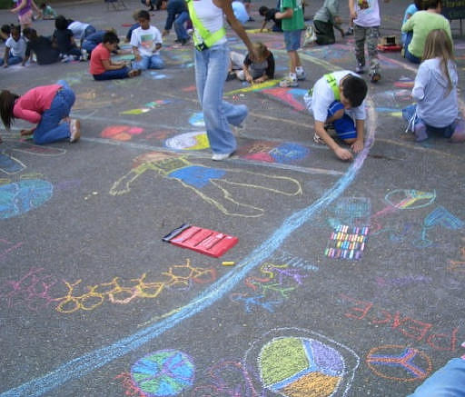 with this sidewalk/pavement chalk extravaganza, at thousands of locations, in as many countries, cities and towns around the world as is possible.