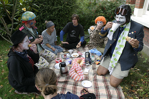 Clowns mark out site of 4th runway - in Lord Soley's garden