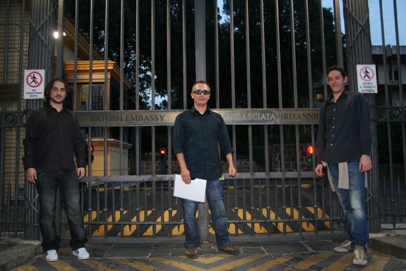 Photo, from left: Dario Picciau, Roberto Malini and Matteo Pegoraro (EveryOne Group) after the meeting with the British Embassy