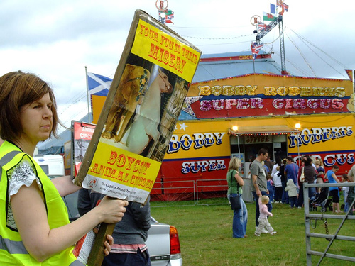 If she'd stopped to pick up a leaflet, she might have found out just what being a circus animal means: travelling between shows every week, sometimes for long distances; long periods confined in cages or tethered on short chains without opportunities to exercise; physical abuse during training; disturbed behaviour caused by the inhumane treatment...