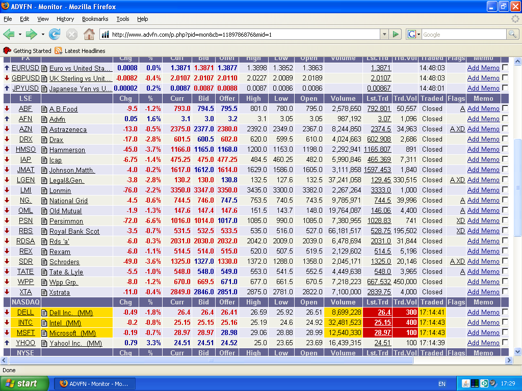 For anyone wanting to keep an eye on the markets .Or if your granny keeps her savings in Northern Rock.Go to advfn.com and register with a hotmail address.You will then get live streaming info from all the markets.