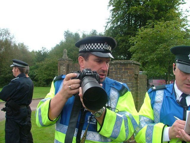 It should come as no surprise, then, that these watchers were most hated by the FIT. Although they were trying hard to not lose their temper, they repeatedly pushed one FIT Watcher violently. In Crawley, at the public meet-and-greet on Thursday, she almost lost her camera when PC XB91 tried to take it by force. Another watcher, who had reportedly been 'a pain' from day one, almost got arrested by XB91 and CO2558 (Steve Discombe) after he was singled out on the Saturday march and accused of 'anti-social behaviour'. It was only his press card, and the arrival of a video activist with her camera, that saved him.