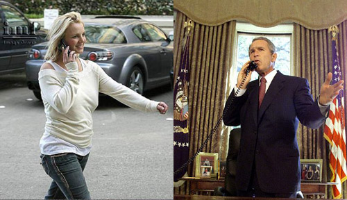 George Bush: “I’ll take care of it Courtney. No one ever accused me of being the Manicurist in Chief. Britney Spears and the kids and I were sitting in the studio in the White House and Britney wanted to call the song “Raider” over K-Fed raiding her money and taking her children and all, and I thought that we should call it “Radar” to please our Halliburton and Carlysle friends so we agreed to compromise; the song was called “Radar” but when Britney sang it she pronounced it “Raider”’, kind of like “Nucular”, if you know what I mean. I mean Al Gore says that he won the Presidency, and then he wins the Nobel Peace Prize. Tell me, how does making a movie about so called Global Warming qualify a person to win the Nobel Peace Prize. Isn’t it like mixing baseballs and basketballs Courtney? Can you explain it to me?”