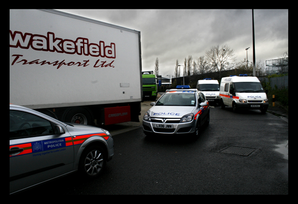 Shortly after, 6 police cars and 2 police vans arrived. As the protesters were leaving the area, all were stopped and searched under Section 44 of the Terrorism Act 2000.