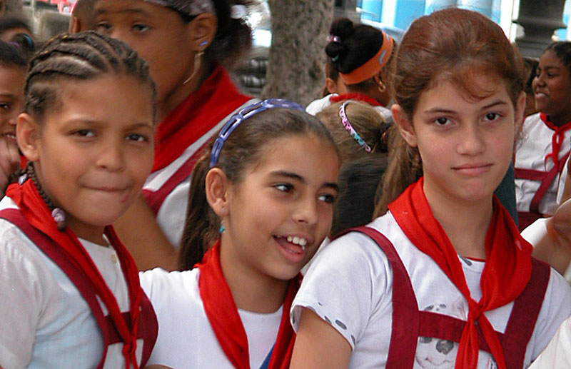 During recess, Rachel, who up until then was concentrated on Julia’s explanations, pauses to send a message: "I want to send a kiss to Fidel, so he gets well. He has given me all these things I have."