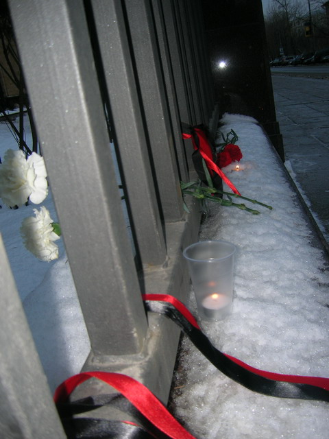 They came up to Czech Embassy, put the Yan's photo, brought flowers to his portrait, and by lighting candles they demonstrated that they are not pococurante to what is happened on the Earth and they wouldn't stay home watching scoundrels killing people.