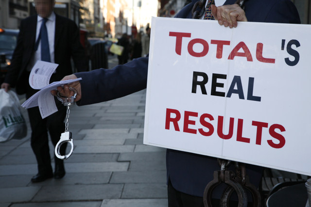 Protest at Total petrol station, Dorset House, 170-172 Marylebone Rd, London NW1 5AR.