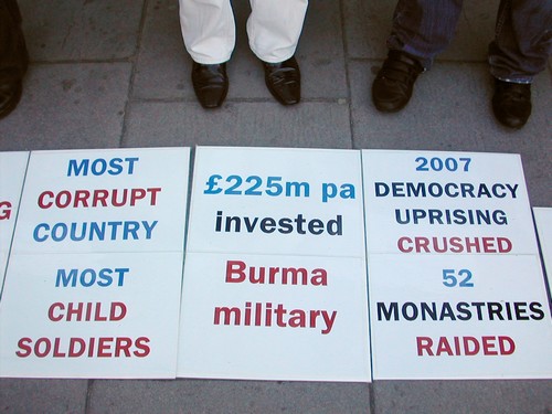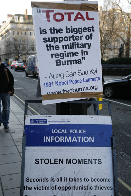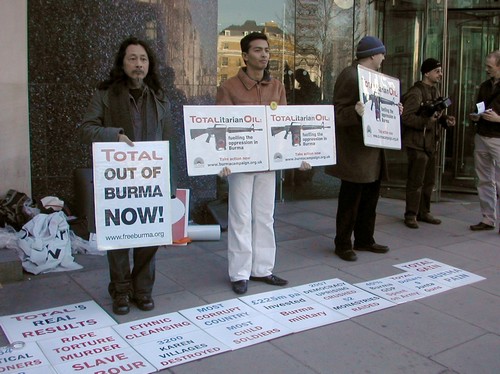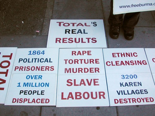 [1] Aung San Suu Kyi, Burma’s democracy leader, has said that “Total is the biggest supporter of the military regime in Burma.” For more information about Total Oil's investment in Burma see the Burma Campaign UK website: