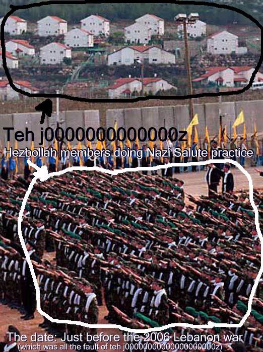 Oh, and please check out the attached pictures of Hezbollah militants doing the Nazi salute.