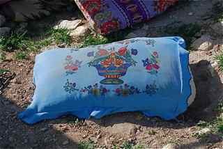 Two women come and lift the tarpaulin so I can get shots of the mattresses and bedroom furniture underneath.