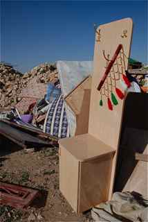 I ask if it is ok to take video and stills, they agree and I move to photograph a heap of furniture stacked on the hillside.