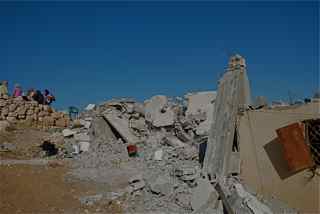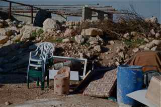 Just down the hill, the head of the family shows me the remains of a beautiful Arabic house built by his ancestors 150 years ago. The army had destroyed it and now he stables his flocks its’ ruins, again afraid to rebuild