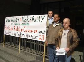 The workers were forced to resort to the drastic step of a hunger strike because their union, Unite, had reneged on commitments given to them last September. These were that the union would pay the legal costs of their long running Industrial Tribunal case against their employer, ICTS, and would also meet the costs of defending the Industrial Tribunal ruling should ICTS appeal the decision. The union also promised to offer them compensation for its role in co-operating with ICTS to have them sacked.