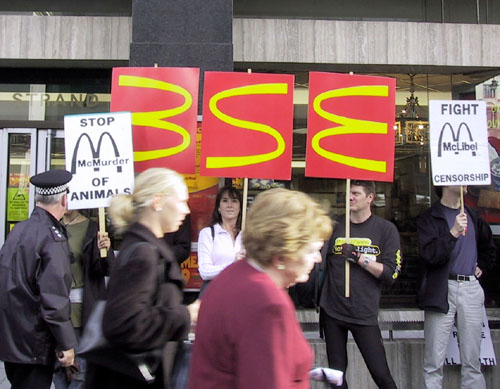 As well as frightening Mcdonalds with free food, Mclibel leaflets were distributed outside the building.