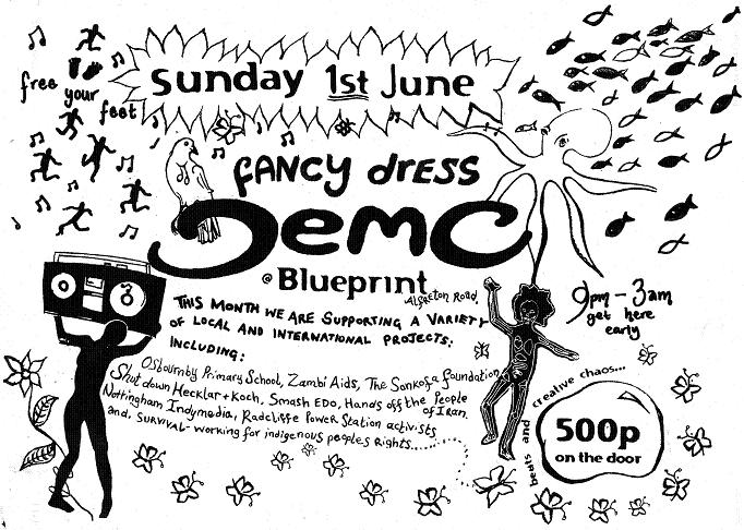 So this month we are celebrating the last year or so of DEMO with a kind of ‘best of’; theming our decoration according to some past issues: Jungle, Water and Climate Change upstairs, and AIDS/Health, Anti-Arms Trade and Play downstairs/outside!