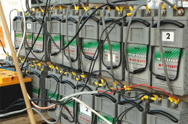 in fact powered by a huge bank of batteries, topped up from 4 solar panel arrays.