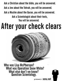 Its fruit n nut founder L.Ron Hubbard, a fanatical science fiction writing waster who couldn't even write a good story, dreamt up this Scientology farce as a get rich quick and sod everyone in the process, we already know a statement made by him about getting rich quick by setting up your own religion/cult.