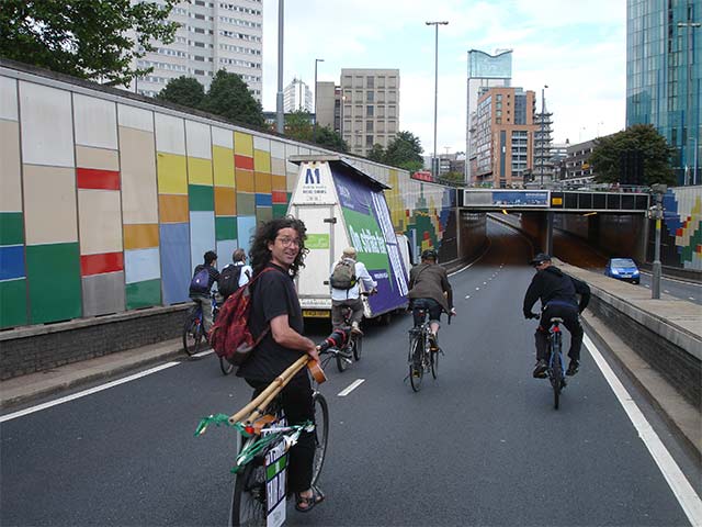 A mobile billboard with the words 'Strike for Fair Pay' led the motorcade up to Bristol Road and around the ring road to Bristol Road, up Bristol Street and then surprisingly under the City Centre through the Queensway Tunnel. The 'drive slow' then went past the Fire Station at St. Chads, onto the Bullring and the markets, down Pershore Street to rejoin the inner ring road, then up to Five Ways and ending at the Tower Ballrooms in Edgbaston.