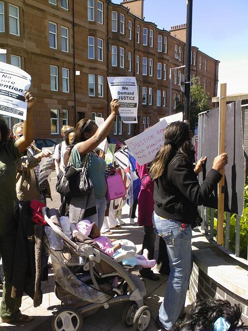 Twenty six year old Phiona Lomisa was detained when going to report with her nine month old son, Bradley, at the Home Office in Glasgow at 9am on Friday morning. Like many of the other families detained this year, Phiona did not even know her case had been refused.