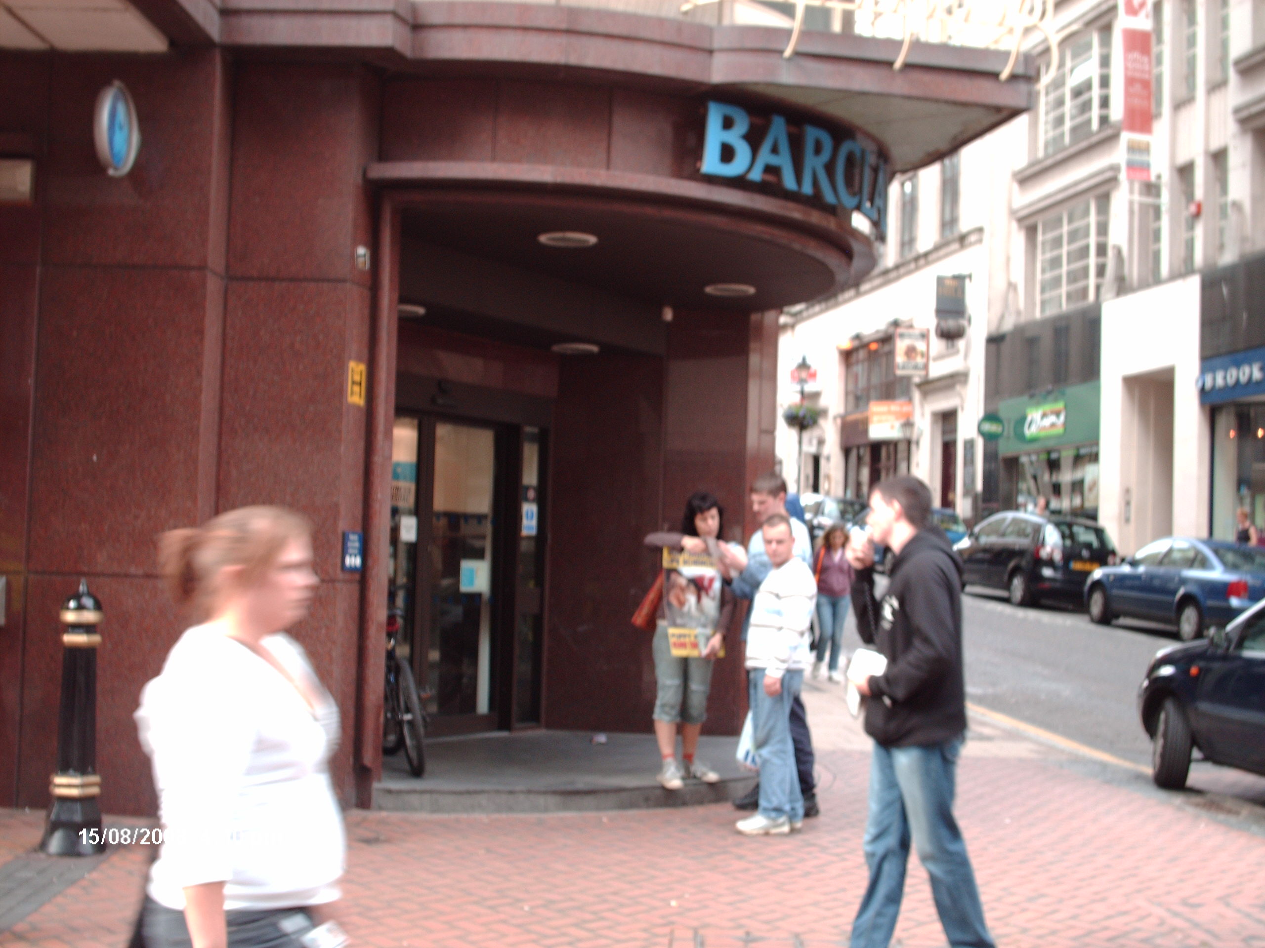Eventually,Barclays decided to shut their front door! Customers wanted to get in but Barclarys weren't allowing it.No customer respect,really.They directed the people who wanted to get in,to the side door,but we soon spread over there too.Informing every customer who went in there.