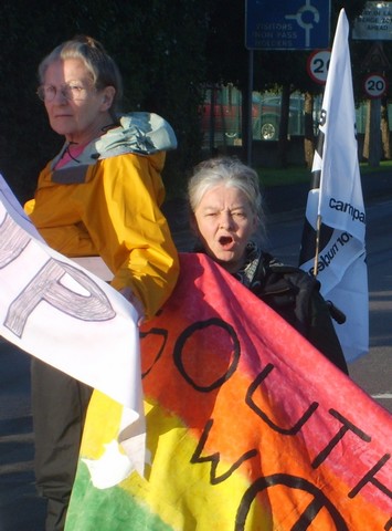 Police eventually arrived and had to divert traffic for a further hour, until the police cutting team finally arrived. At this point, the blockaders and their supporters agreed to leave, given that most workers had already entered the base. They were able to keep all their banners, ladders and other blockading equipment.