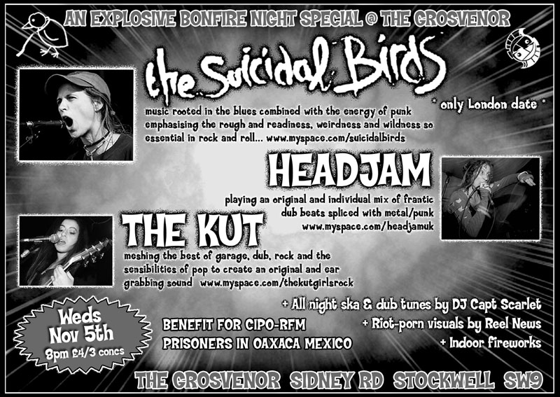 http://www.indymedia.org.uk/en/2008/04/396418.html With 3 bands for 3 quid + ska/dub tunes + visuals by REEL NEWS see: