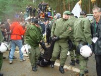 Police officers stood in long chains waiting to be allowed to carry "their" blockaders from the road. These police officers mostly looked relaxed and made jokes - in opposite to some of their colleagues on the street.