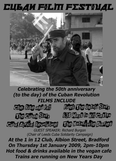 This event is not necessarily an uncritical look at the Cuban Revolution. Yet, the purpose of the event is to celebrate the good things done by the revolution, something which many democratic nation states could learn a thing or two from. The films are there for information purposes.