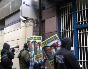 We then visited the Mellons, who have presently lost over $1 million on their LSR shares in their greedy rush to make a profit from HLS - NOT!. Bank of New York Mellon are a big shareholder in the NYSE and in HLS itself, and we shamed this company for its dealings with both these unethical companies. BNY Mellon are, like Barclays, a double target.