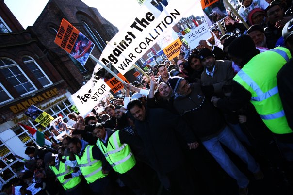 The rally, which was organised by the Teesside Against the War coalition, was held outside the town hall in Middlesbroughs Central square. The rally was the end point for a march from Middlesbrough Cenotaph along Linthorpe Road to the town hall.