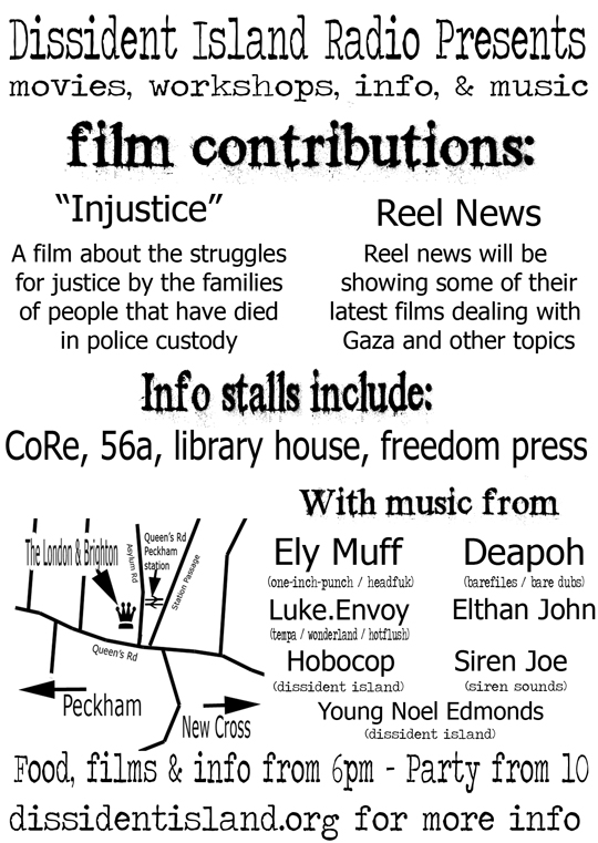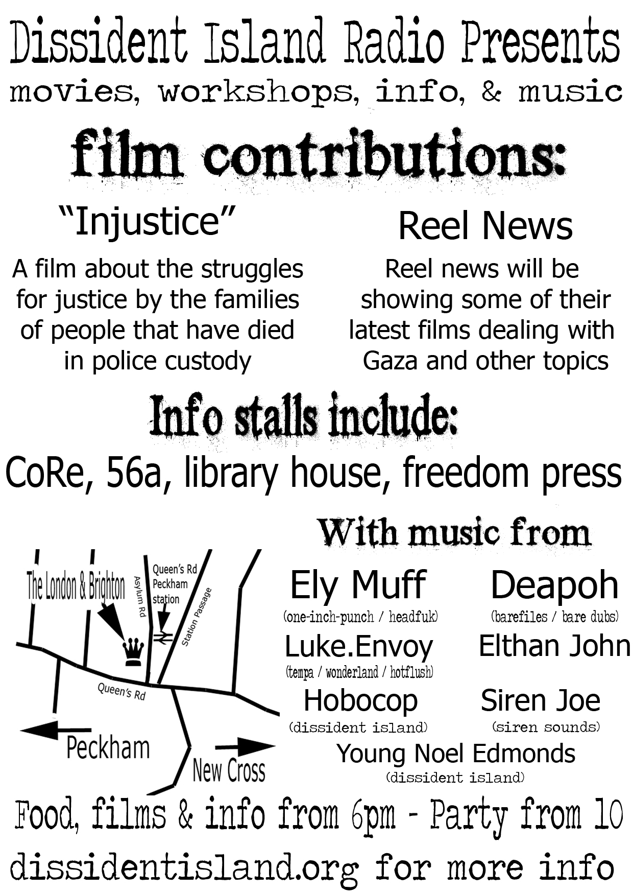 - FILMS (including 'Injustice' hosted by CoRe), FOOD (from RYF Brixton),