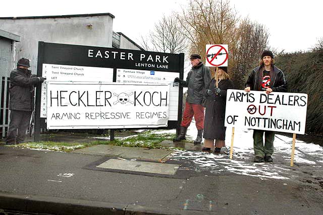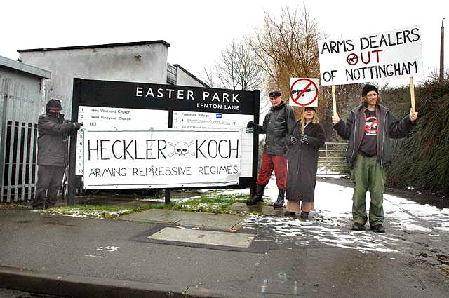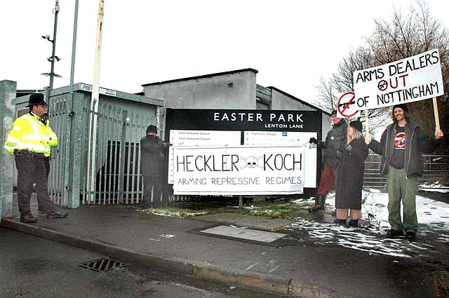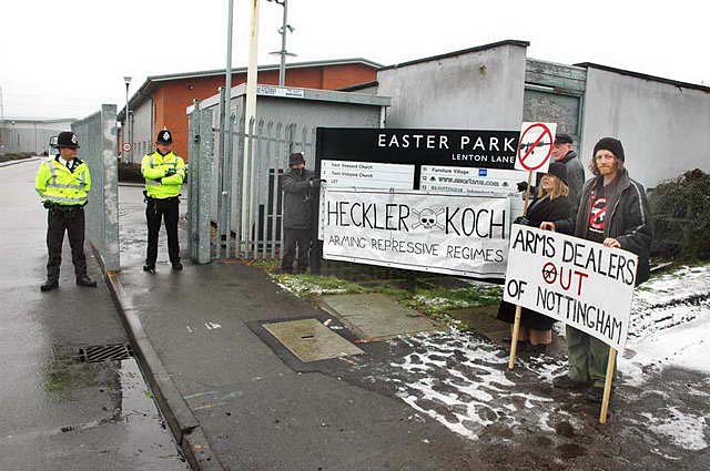 Demos continue [February] at Heckler & Koch weapons HQ in Nottingham