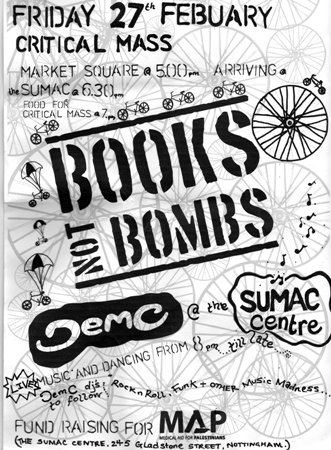 We will be taking donations for Books Not Bombs - the campaign to encourage Notts Uni to support Gazan students (rather than do r&d for bae systems)