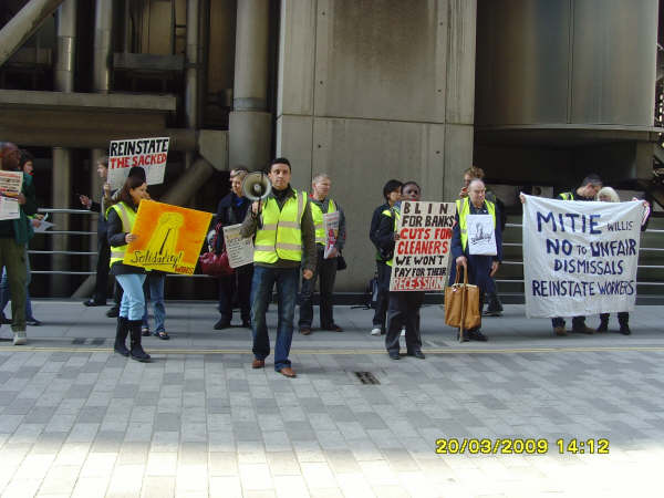 I am writing to demand the reinstatement of the five cleaners made redundant from the Willis Buildng by Mitie Cleaning and Support Services at the end of last year. They are Edwin Pazmino, Lucinda Villarroel, Domingas Dias, Etelvina Cristo and Cristina Sergio.