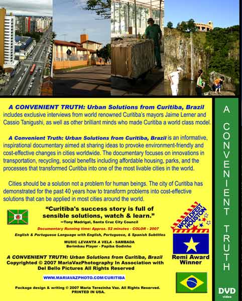 A Convenient Truth: Urban Solutions from Curitiba, Brazil is an informative, inspirational documentary aimed at sharing ideas to provoke environment-friendly and cost-effective changes in cities worldwide. The documentary focuses on innovations in transportation, recycling, social benefits including affordable housing, seasonal parks, and the processes that transformed Curitiba into one of the most livable cities in the world.