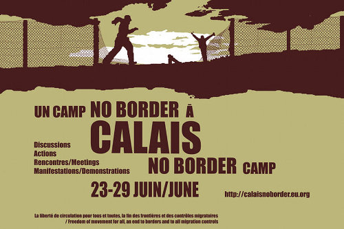 This camp will continue the tradition of the No Border camps across the world since the late 1990s and, like the camp taking place this year in Lesvos in August, it will be a space to share information, skills, knowledge and experiences; a place to plan and take action together against the system of borders which divides us all. For centuries European imperial powers have exploited the land, resources and people of the majority world to become wealthy and powerful, leaving war, environmental destruction and massive inequality in their wake. Those who attempt the journey to the UK or elsewhere in Europe are challenging this injustice by their movement. The situation in Calais is a result of the compromise and conflict of interest between French and UK immigration policy and we call on groups, networks and individuals here to take action across Europe and to become part of a global movement of solidarity that defends their right to choose where they move .