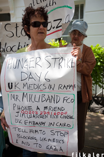 Two British surgeons on a humanitarian mission to Gaza are undertaking hunger strikes until permitted access to the city from Egypt’s Rafah crossing.