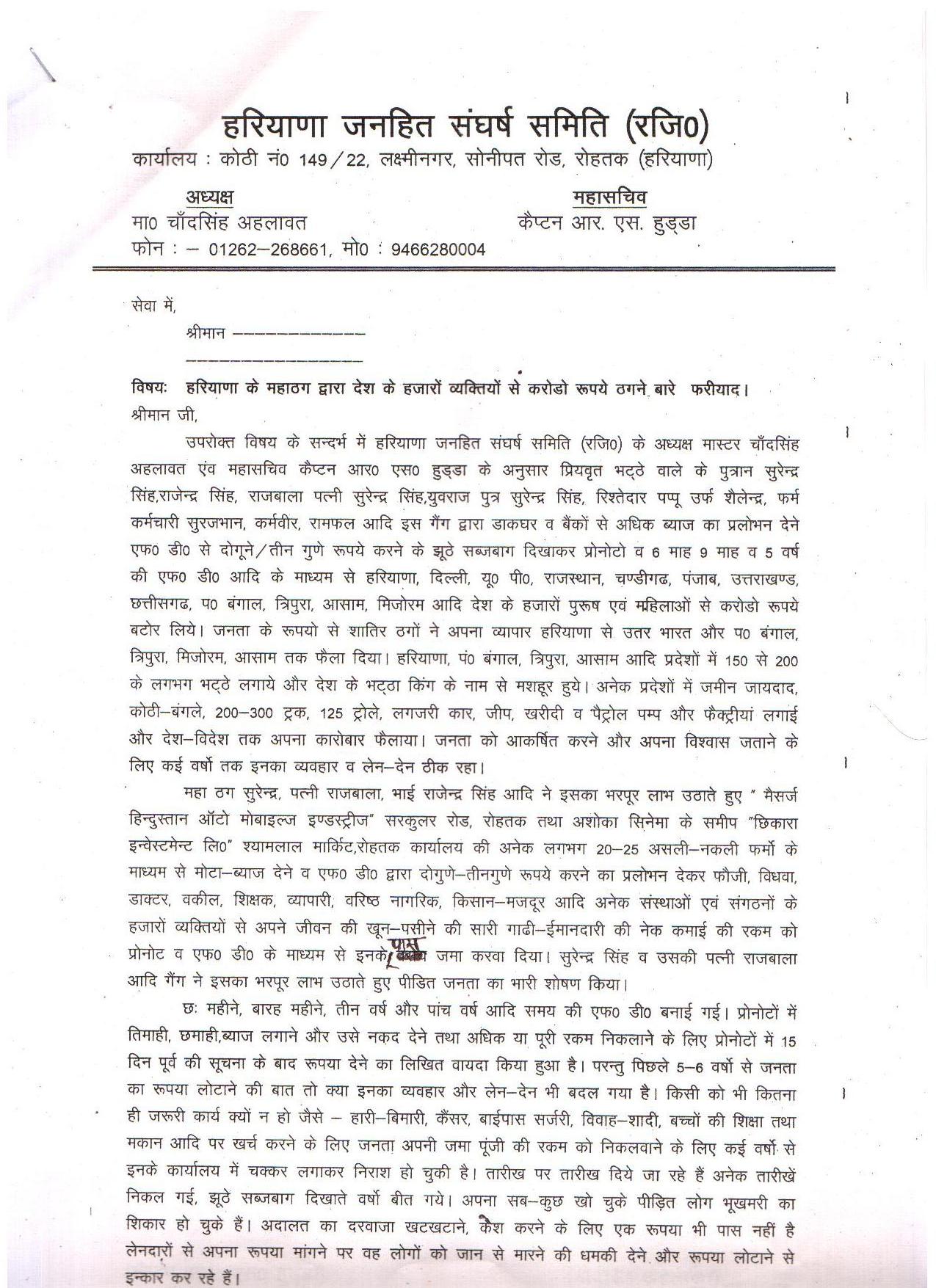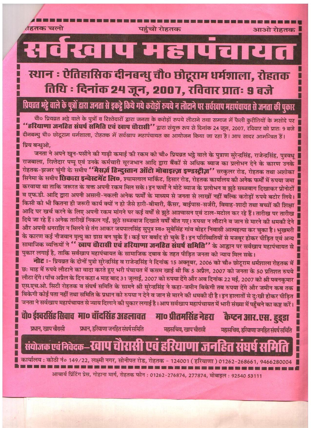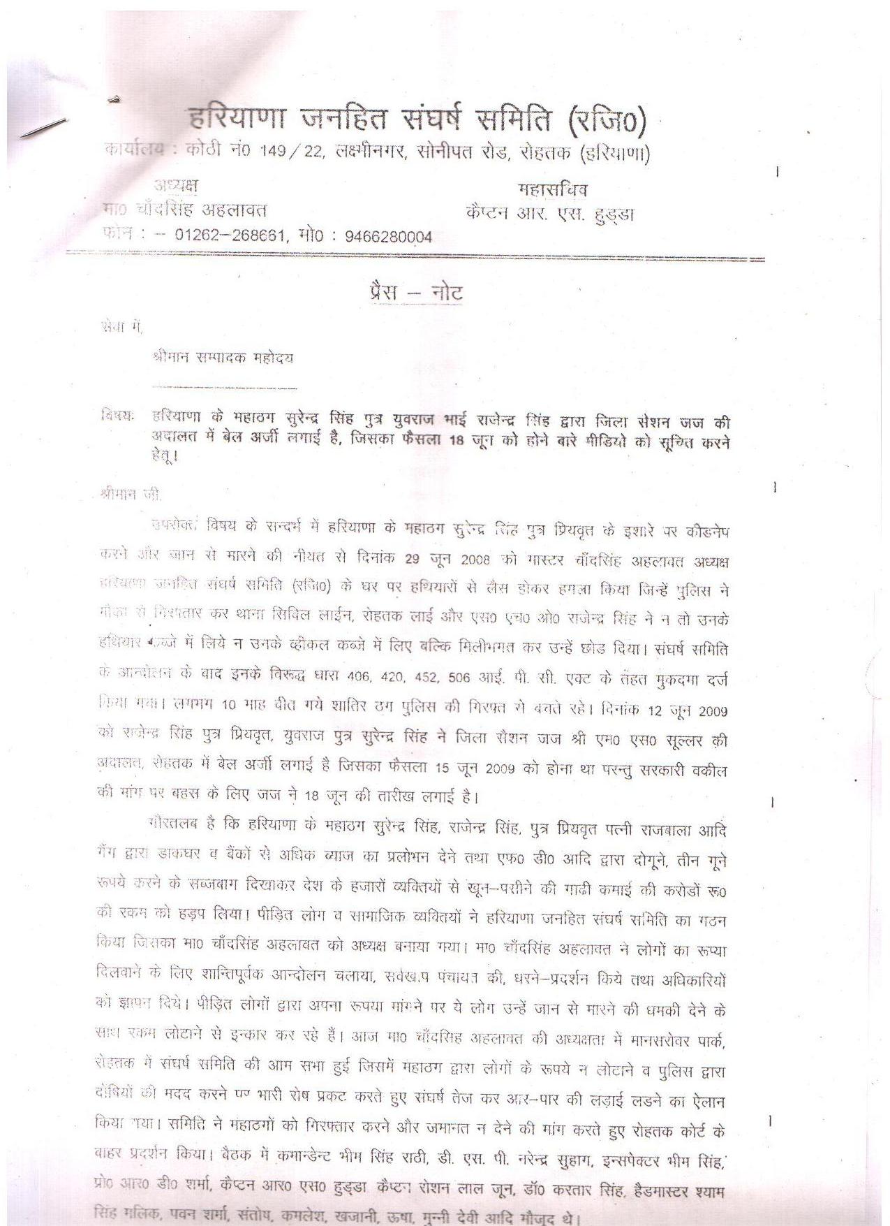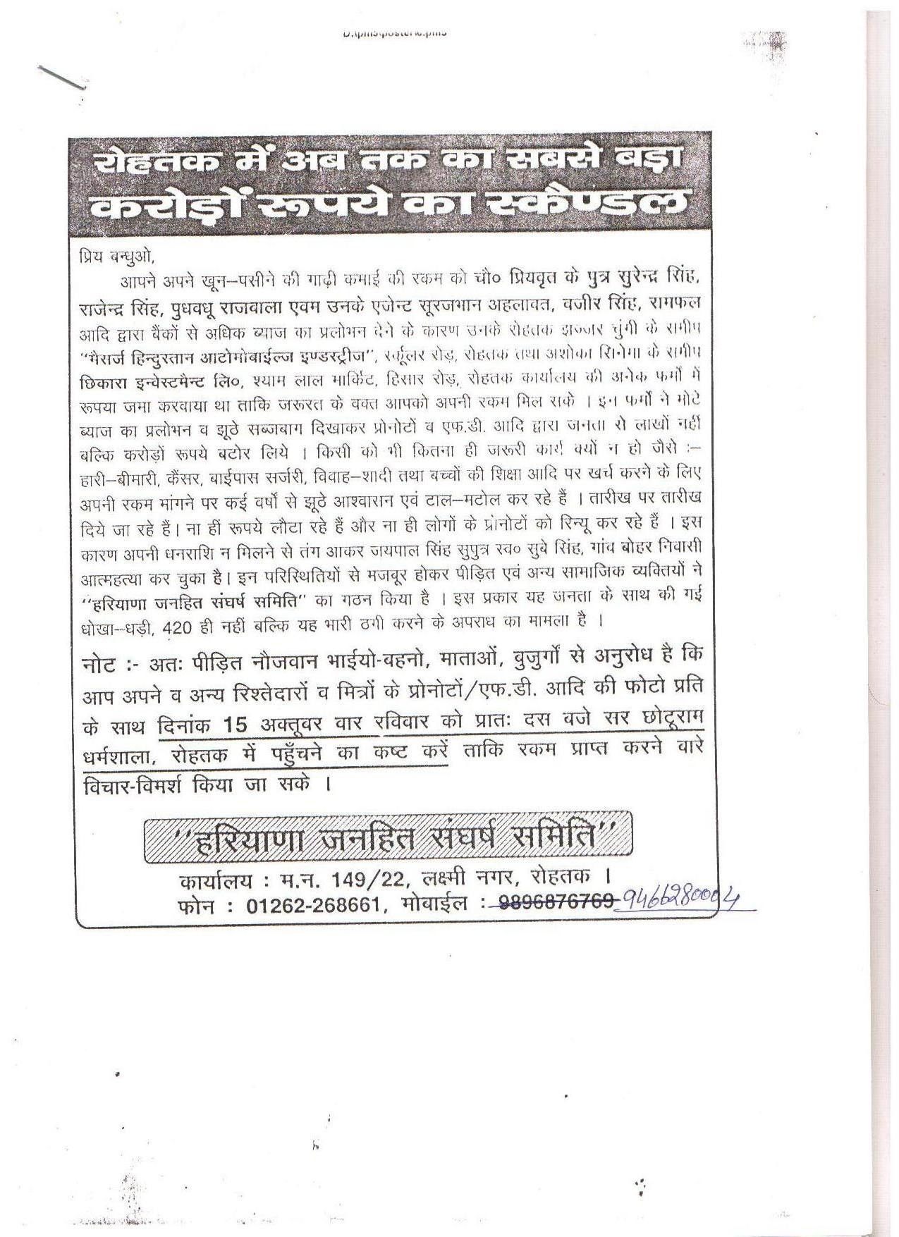 Breaking News: Big financial scandal based in Rohtak - Naresh Kadyan